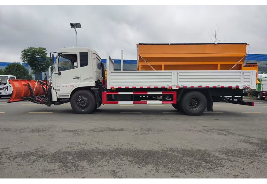 上裝配置 整體避障除雪鏟,夜間工作燈,車取力重型除雪鏟(左右雙液壓驅(qū)動(dòng))可搭配8立方或者10立方融雪撒布機(jī)(獨(dú)立柴油動(dòng)力,鏈條刮板輸送,采用V型料倉,頂部帶防雨罩,折疊式不銹鋼撒布盤)3-3.5米雪鏟、3-3.5米雪鏟及撒布機(jī)均采用集成按鍵駕駛室操作。